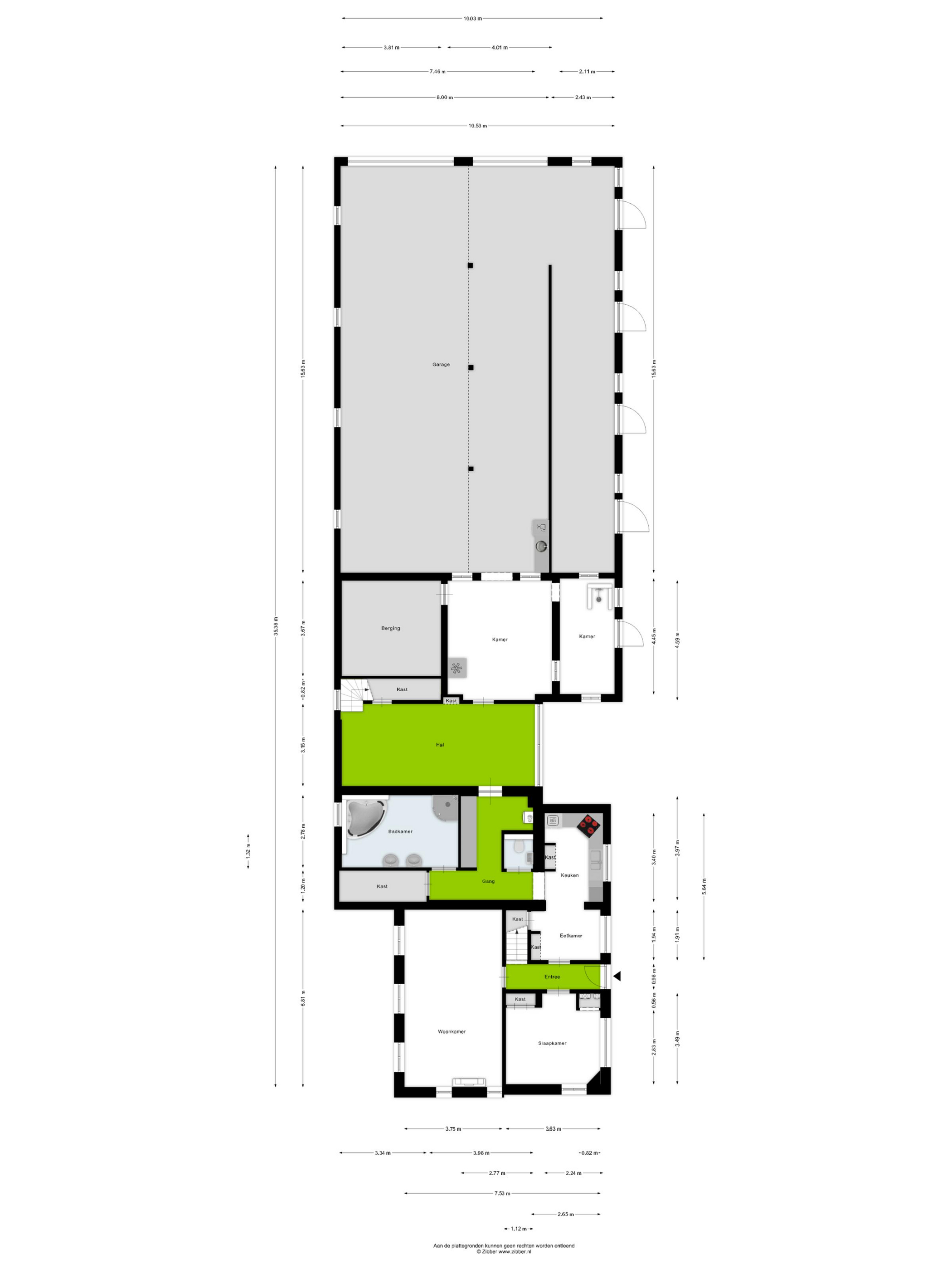 - aangesloten loods van circa 15,65 x 10,53 meter;