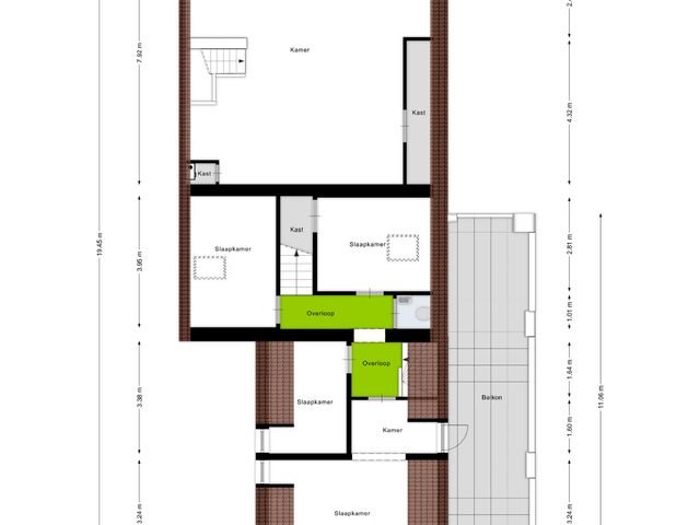 Slaapkamer 1: gelegen aan de voorzijde van de woning; ruime slaapkamer met voorkamer welke toegang geeft naar het balkon (nog in te richten). Ook hier is de hoeveelheid daglicht weer een enorm pluspunt.
