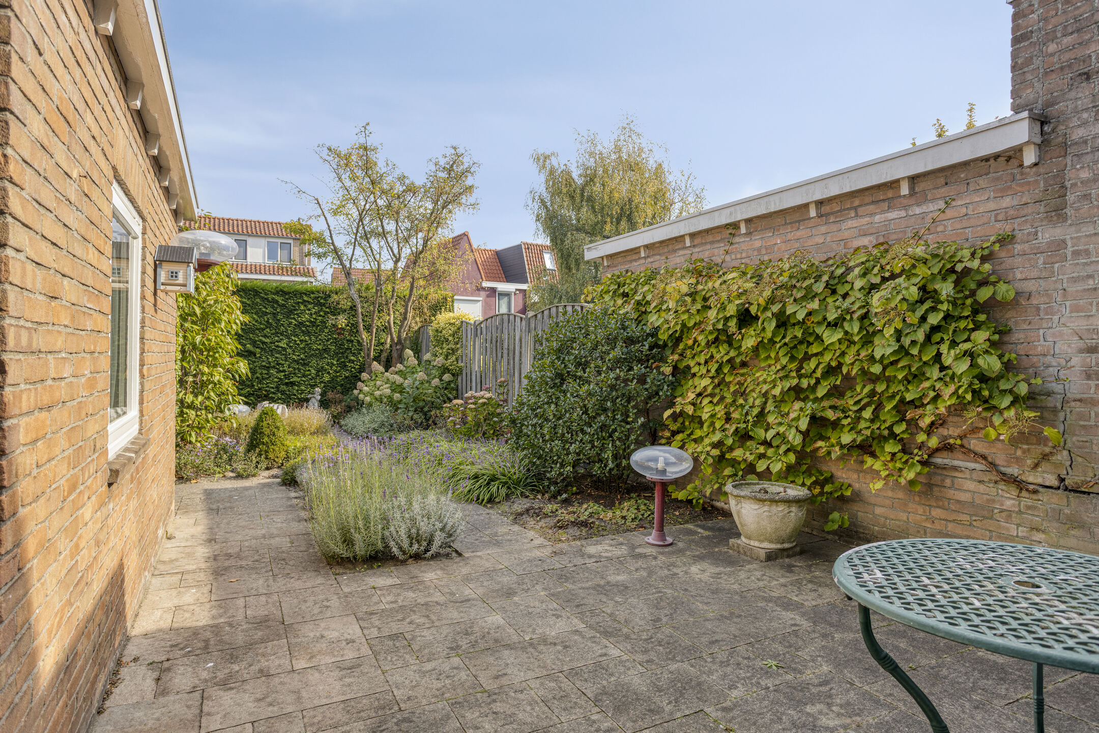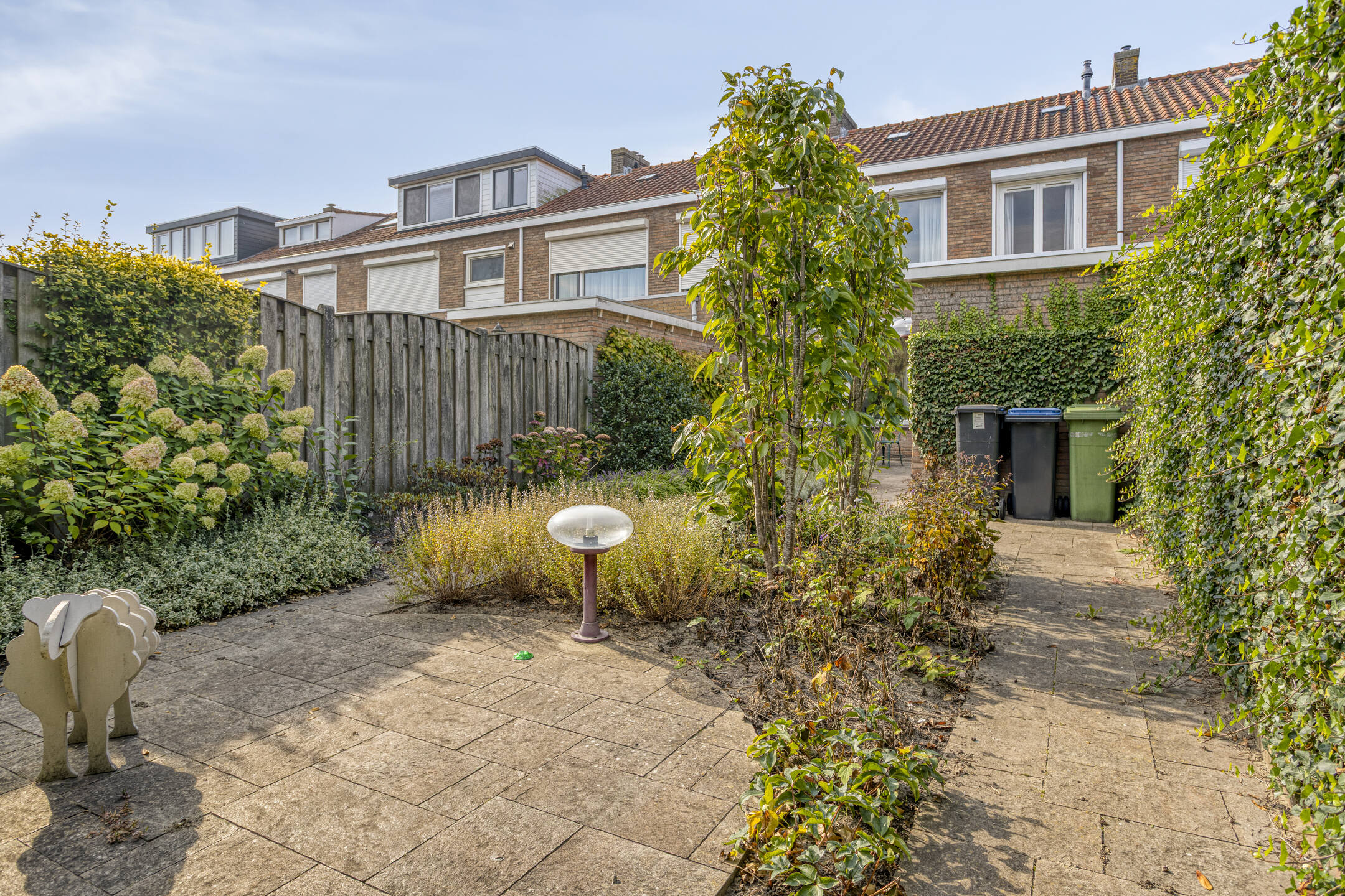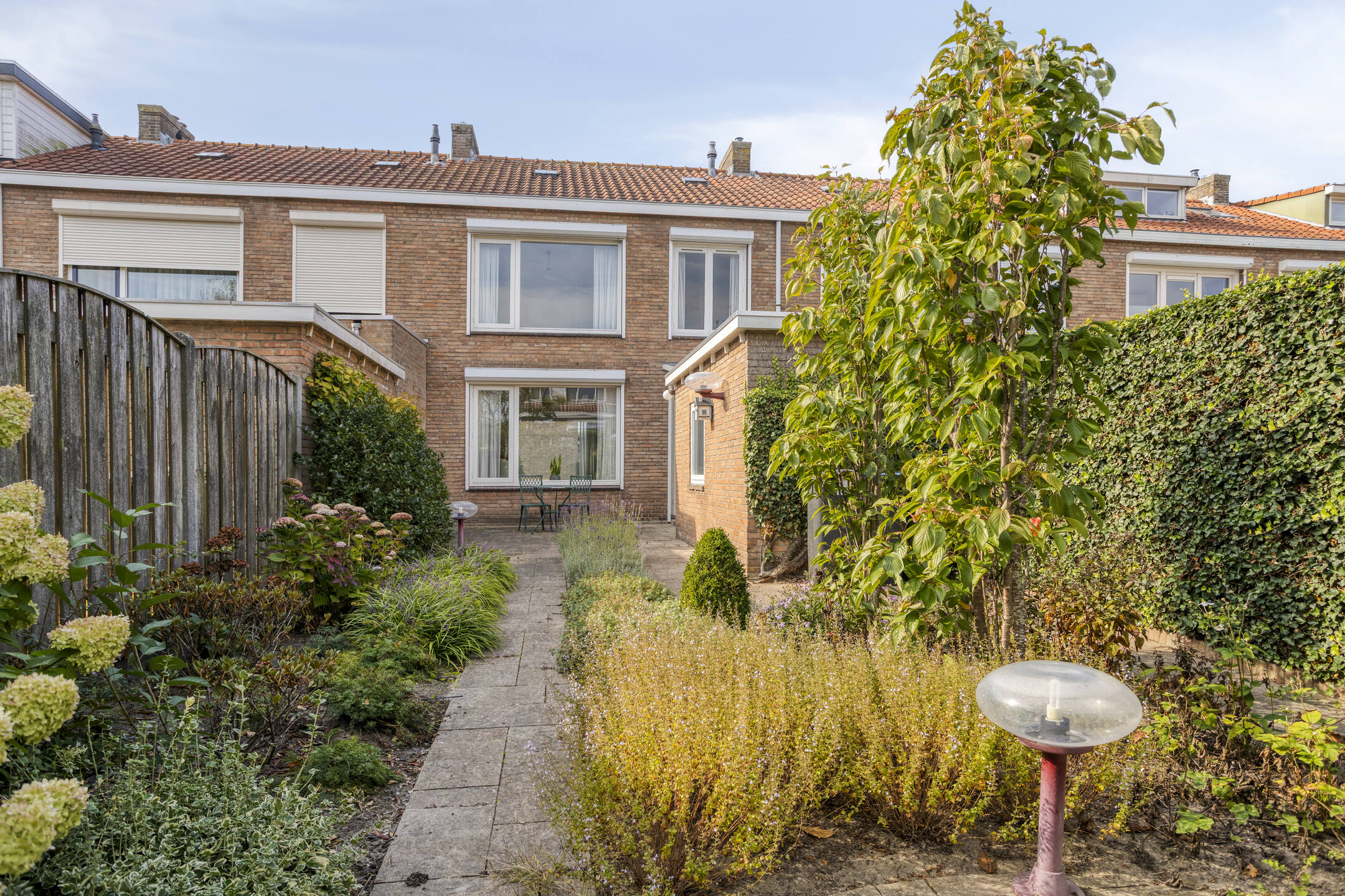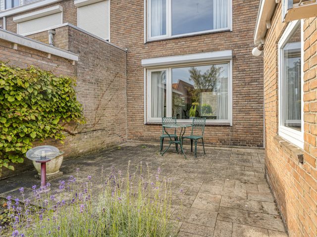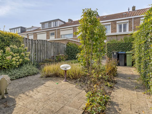 De achtertuin is deels betegeld en deels beplant, waardoor je een fijne afwisseling hebt tussen ontspanning op het terras en tuinplezier. Zo kun je genieten van de zon, barbecueën of je groene vingers de vrije loop laten.