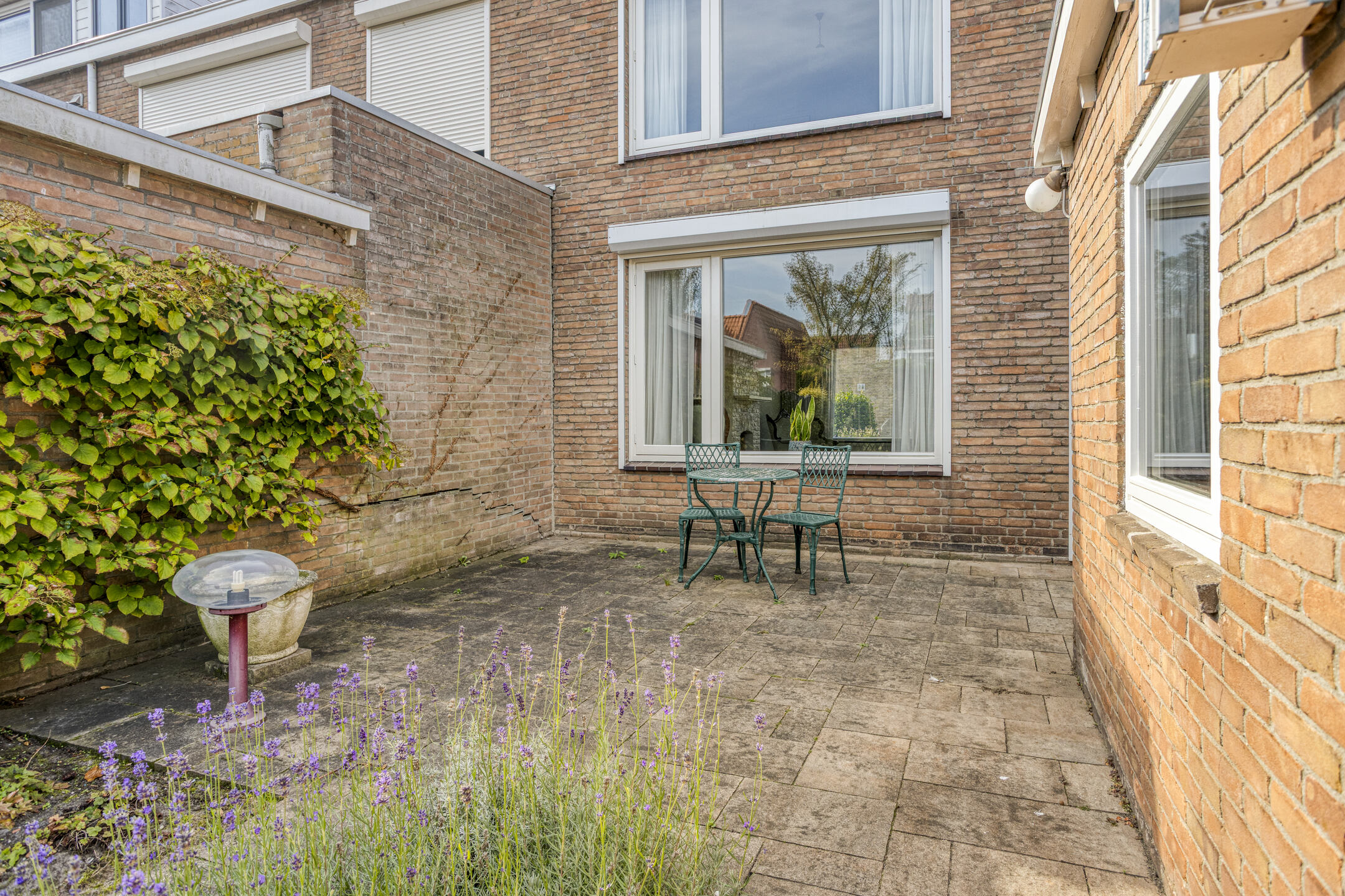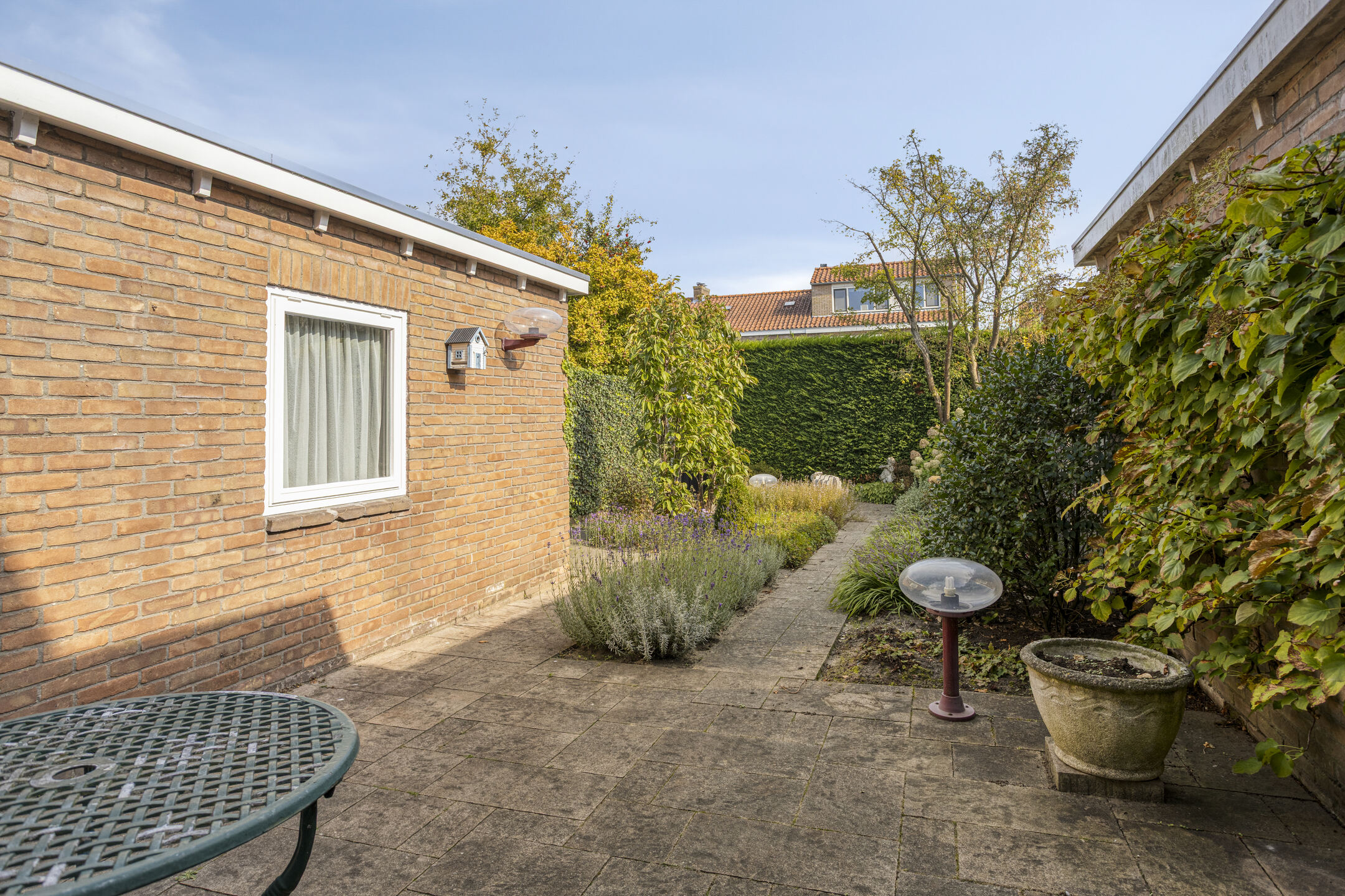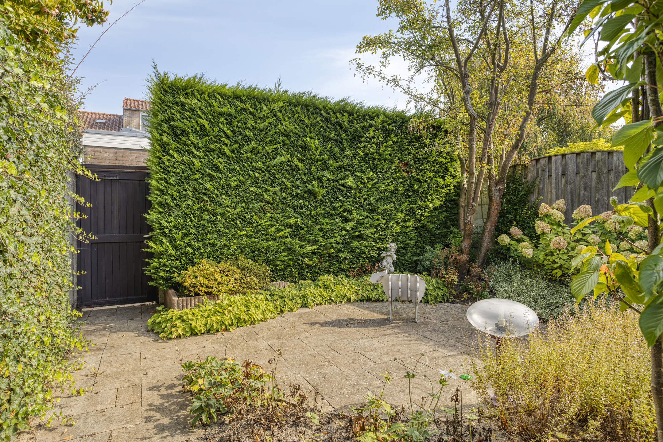 De achtertuin is deels betegeld en deels beplant, waardoor je een fijne afwisseling hebt tussen ontspanning op het terras en tuinplezier. Zo kun je genieten van de zon, barbecueën of je groene vingers de vrije loop laten.