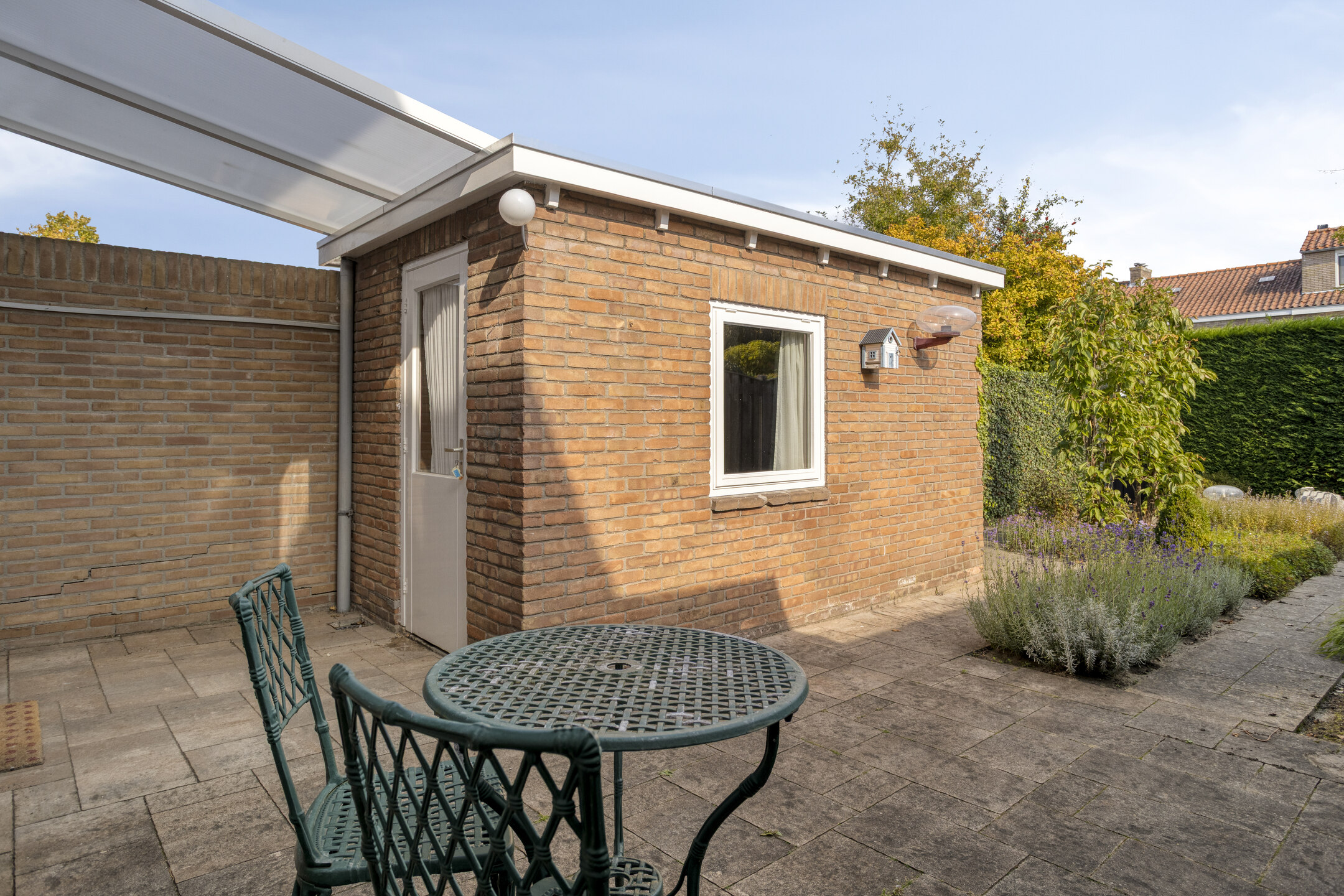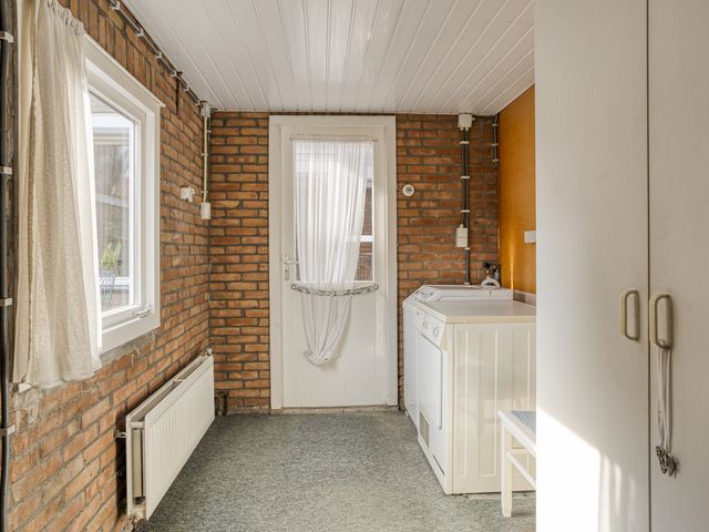 Vanuit de keuken is er directe toegang tot de achtertuin, waar een overkapping je beschermt tegen regen en je droog naar de berging kunt lopen. De berging biedt extra opslagruimte voor fietsen, tuingereedschap of wasapparatuur.